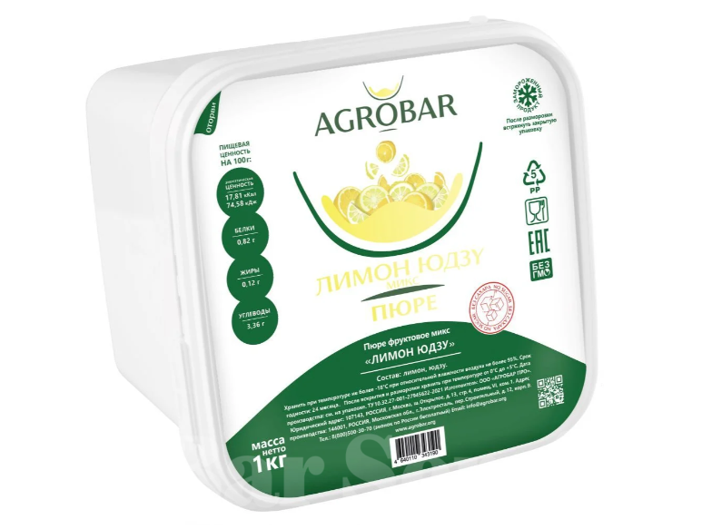 Каталог/Сиропы, пюре и продукты/Пюре, основы для коктейлей и концентраты 4492 Концентрат Лимон-Юдзу 1кг АГРОБАР